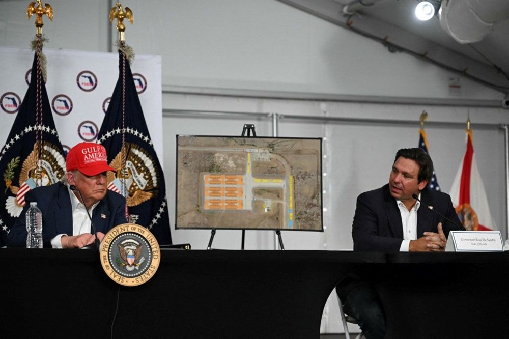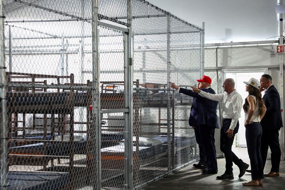 Trump, “Timsah Alcatraz” olarak adlandırılan Florida’daki düzensiz göçmenler için yapılan 5 bin yataklı yeni tutukevini ziyaret ederek incelemelerde bulundu. Yanında İç Güvenlik Bakanı Kristi Noem ve Florida Valisi Ron DeSantis ile birlikte tesisi gezen Trump, burada görev yapacak çalışanlara konuştu, gazetecilerin sorularını cevapladı. Trump, “Timsah Alcatraz” olarak adlandırılan tesisin yakında “en tehlikeli göçmenlerden bazılarını” barındıracağını belirterek, “Bu tesis her yönden 10 mil (16 km) uzunluğunda tehlikeli bataklıklarla çevrili ve buradan tek çıkış yolu gerçekten sınır dışı edilmek.” diye konuştu. Florida eyaleti dışındaki benzeri tesislere ihtiyaç olup olmadığı sorusuna Trump, “Louisiana ve Alabama başta olmak üzere diğer Cumhuriyetçi yönetimlerdeki kırmızı eyaletler de bunu yapıyor. Ne yazık ki Demokrat eyaletler güvenlik ve polislik konusunda pek başarılı değiller.” şeklinde yanıt verdi.